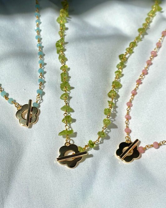 Rosary Chain + Flower Toggle Necklace