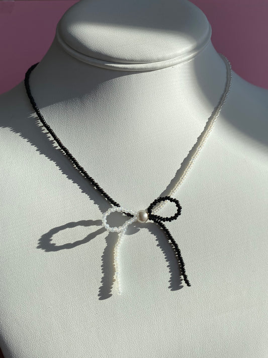 Seed Bead + Pearl Bow Necklace